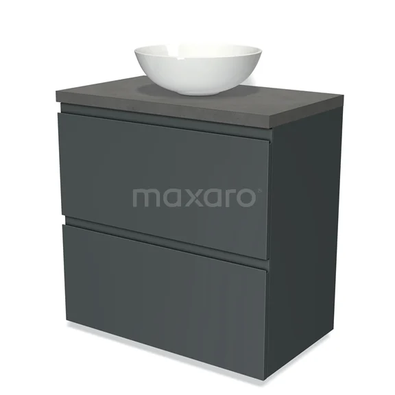 Modulo Plato Badmöbel mit Aufsatzwaschbecken | 80 cm Dunkelgrau Grifflos front Dunkelgrauer Beton blatt 2 hohe Schubladen übereinanderliegend