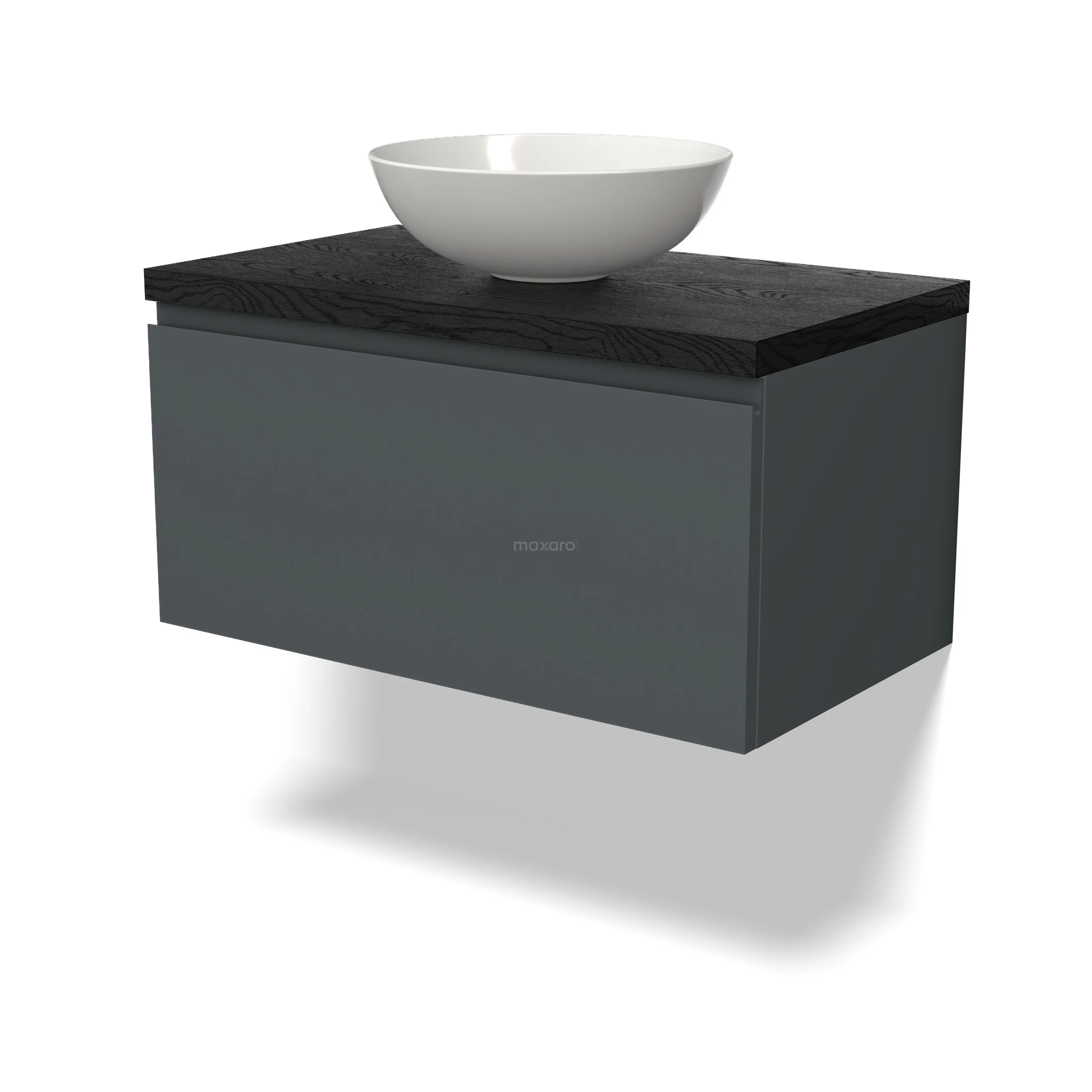 Modulo Plato Badmöbel mit Aufsatzwaschbecken | 80 cm Dunkelgrau Grifflos front Schwarze Eiche blatt 1 Schublade