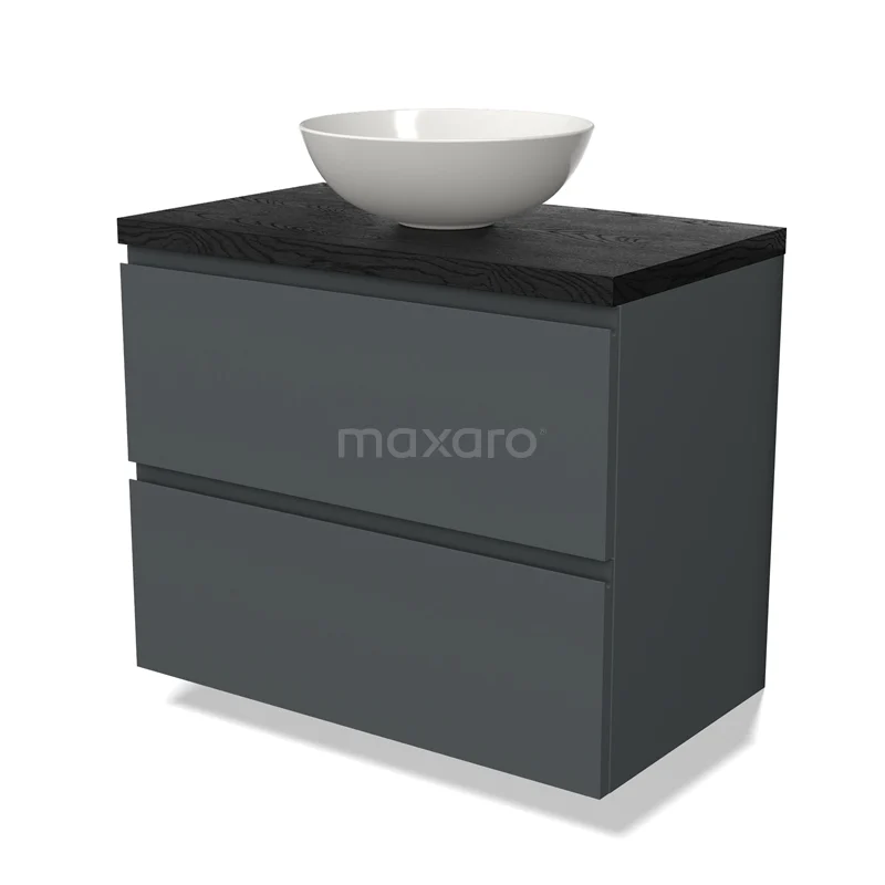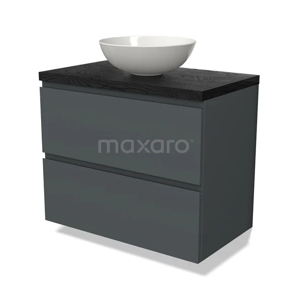 Modulo Plato Badmöbel mit Aufsatzwaschbecken | 80 cm Dunkelgrau Grifflos front Schwarze Eiche blatt 2 übereinanderliegende Schubladen