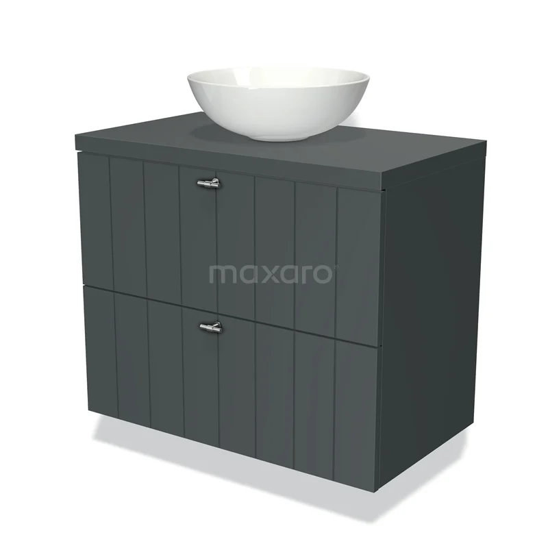 Modulo Plato Badmöbel mit Aufsatzwaschbecken | 80 cm Dunkelgrau Lamelle front Dunkelgrau blatt 2 übereinanderliegende Schubladen