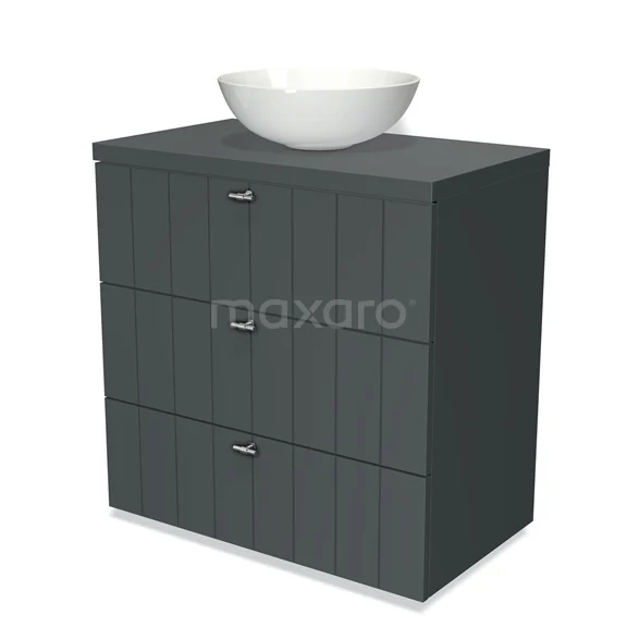 Modulo Plato Badmöbel mit Aufsatzwaschbecken | 80 cm Dunkelgrau Lamelle front Dunkelgrau blatt 3 Schubladen