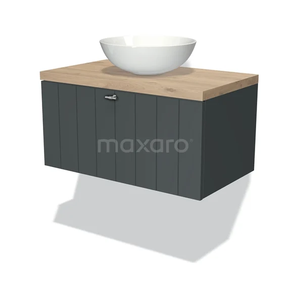 Modulo Plato Badmöbel mit Aufsatzwaschbecken | 80 cm Dunkelgrau Lamelle front Hellbraune Eiche blatt 1 Schublade