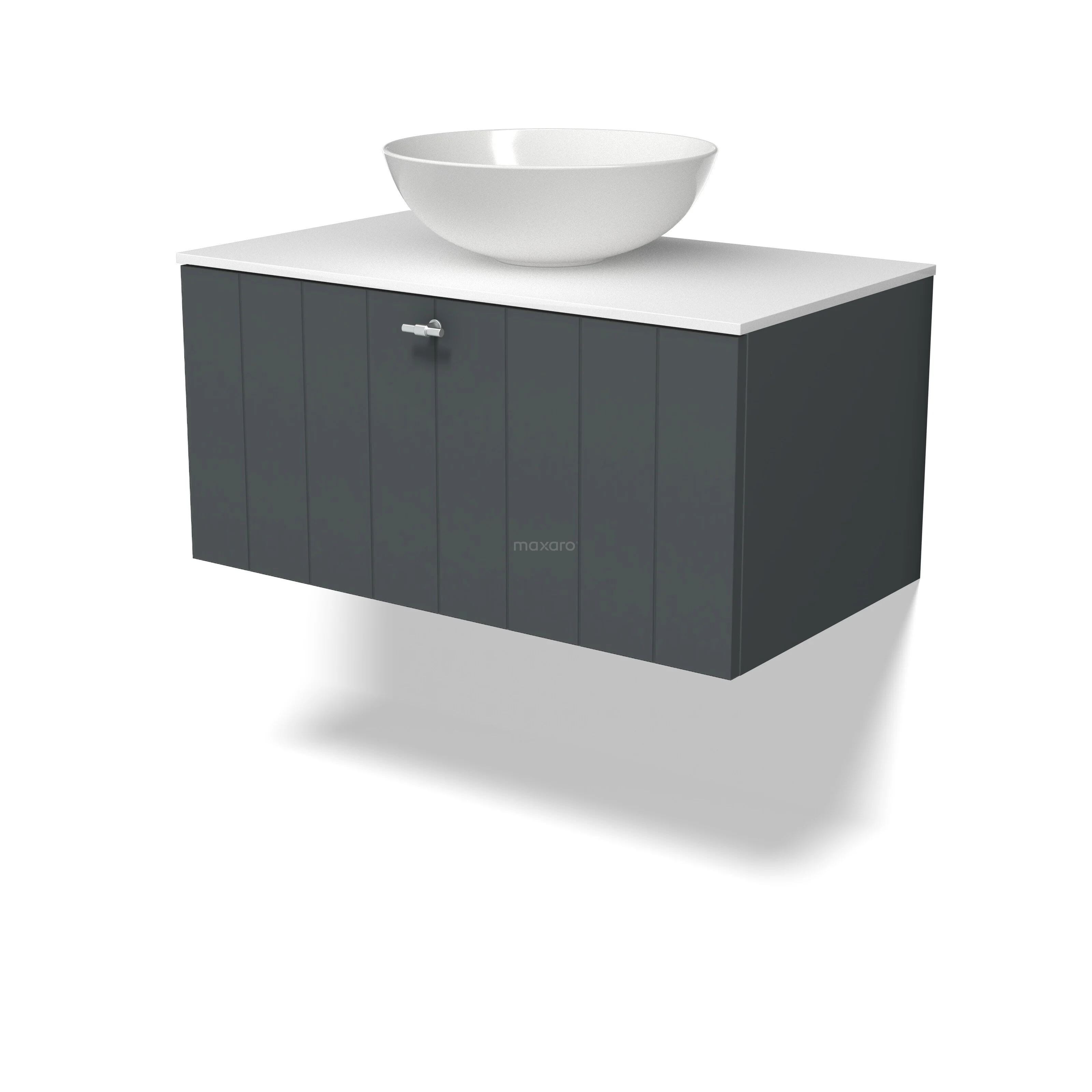 Modulo Plato Badmöbel mit Aufsatzwaschbecken | 80 cm Dunkelgrau Lamelle front Solid Surface blatt 1 Schublade