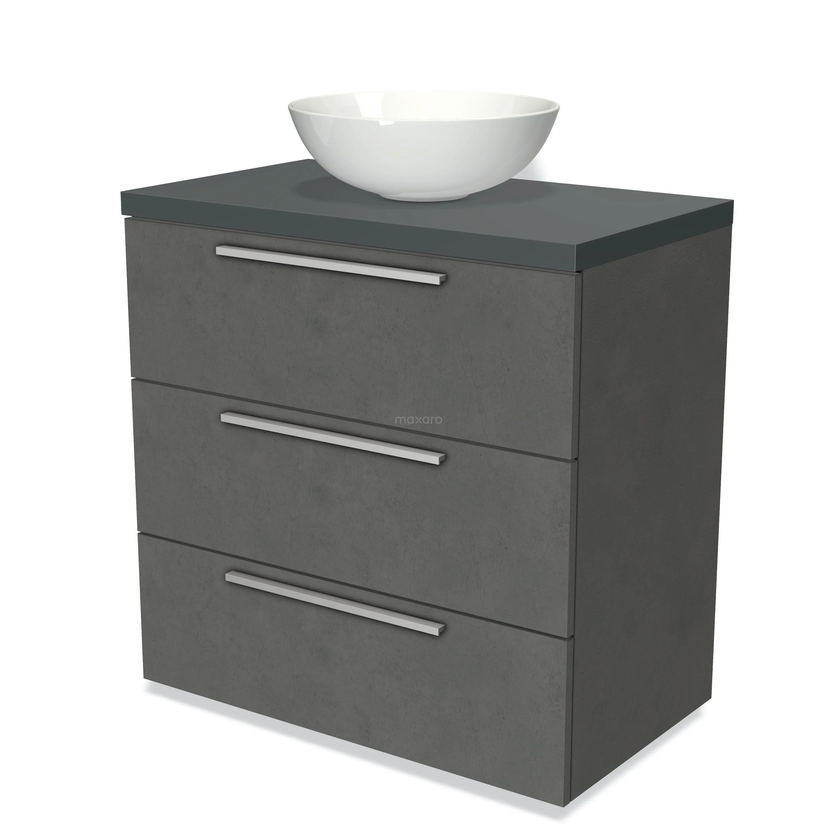 Modulo Plato Badmöbel mit Aufsatzwaschbecken | 80 cm Dunkelgrauer Beton Flach front Dunkelgrau blatt 3 Schubladen