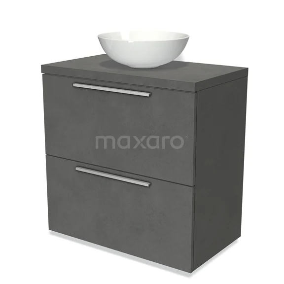 Modulo Plato Badmöbel mit Aufsatzwaschbecken | 80 cm Dunkelgrauer Beton Flach front Dunkelgrauer Beton blatt 2 hohe Schubladen übereinanderliegend