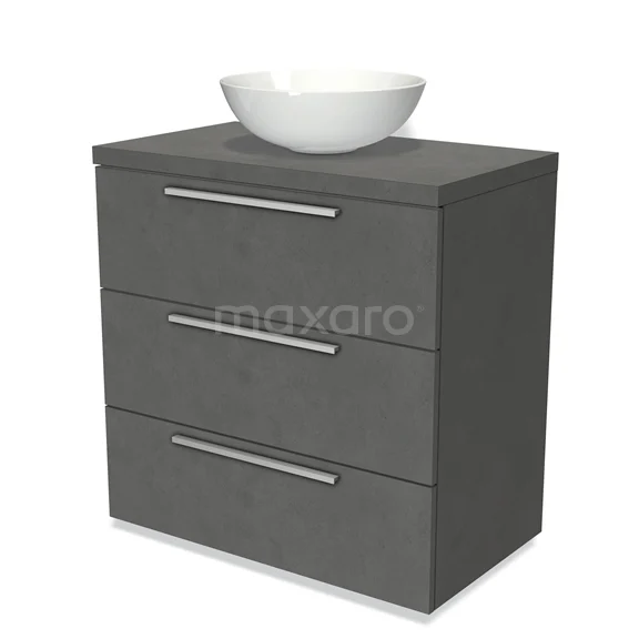 Modulo Plato Badmöbel mit Aufsatzwaschbecken | 80 cm Dunkelgrauer Beton Flach front Dunkelgrauer Beton blatt 3 Schubladen