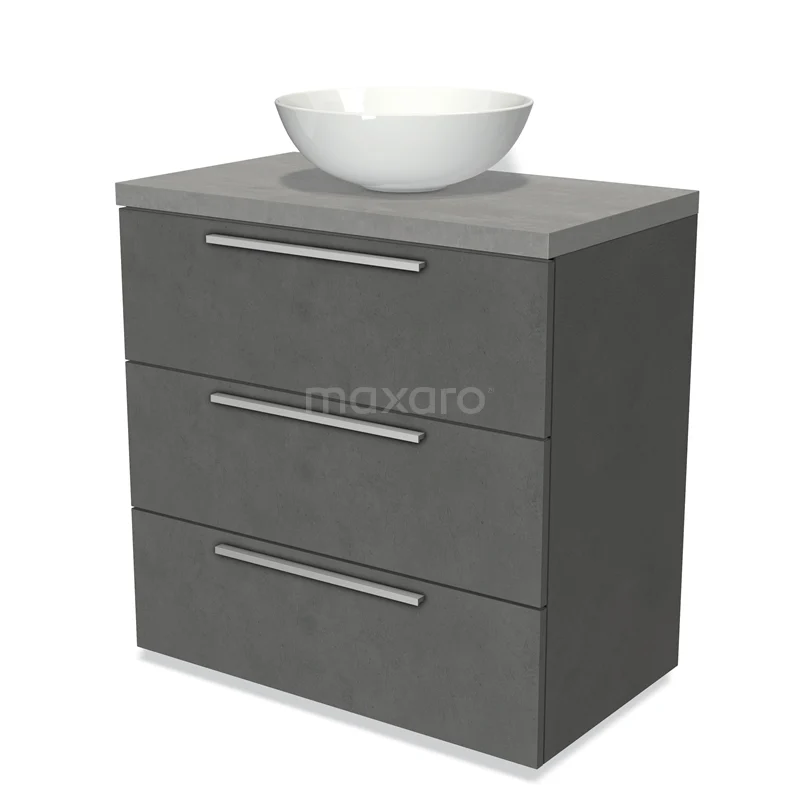 Modulo Plato Badmöbel mit Aufsatzwaschbecken | 80 cm Dunkelgrauer Beton Flach front Hellgrauer Beton blatt 3 Schubladen