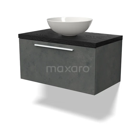 Modulo Plato Badmöbel mit Aufsatzwaschbecken | 80 cm Dunkelgrauer Beton Flach front Schwarze Eiche blatt 1 Schublade