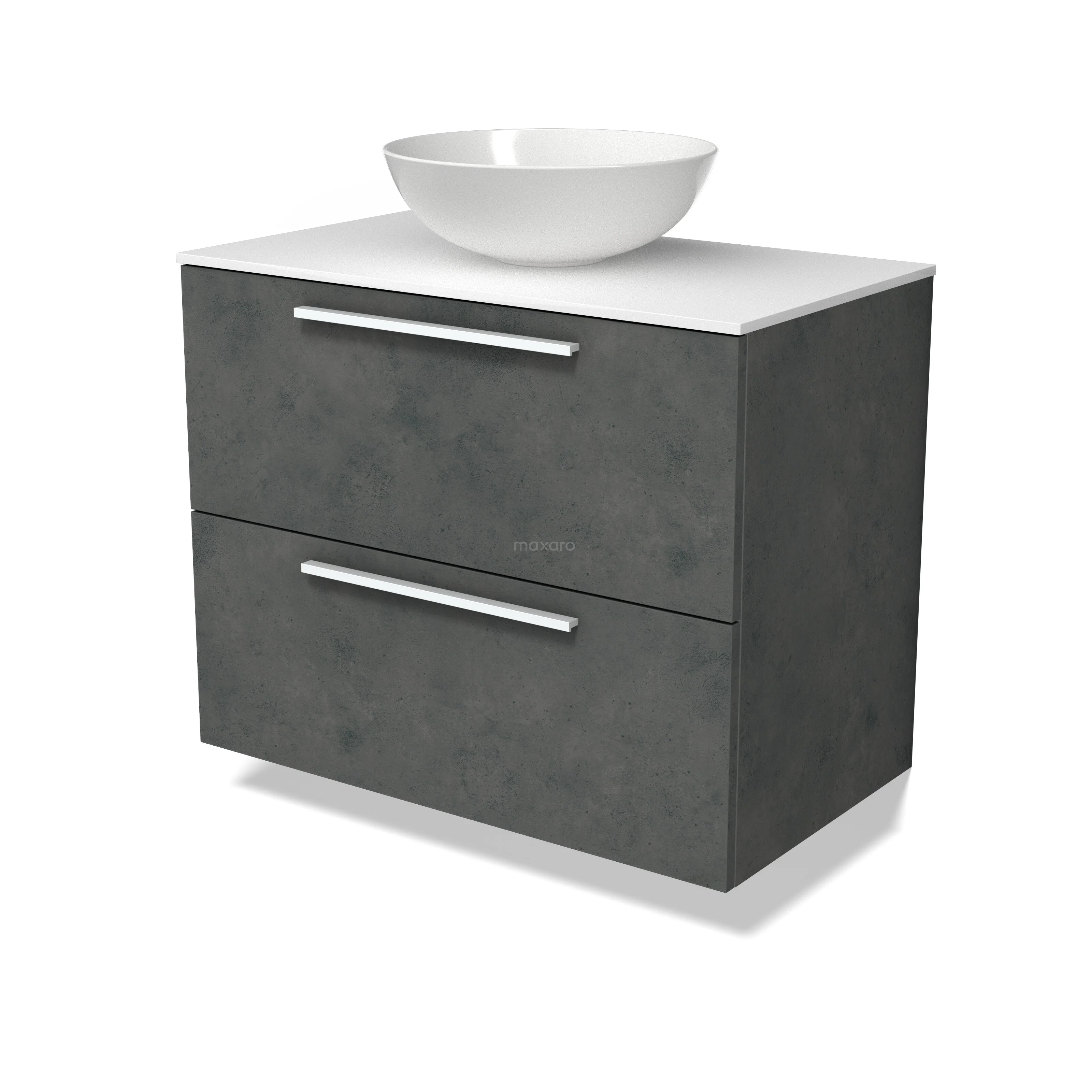 Modulo Plato Badmöbel mit Aufsatzwaschbecken | 80 cm Dunkelgrauer Beton Flach front Solid Surface blatt 2 übereinanderliegende Schubladen