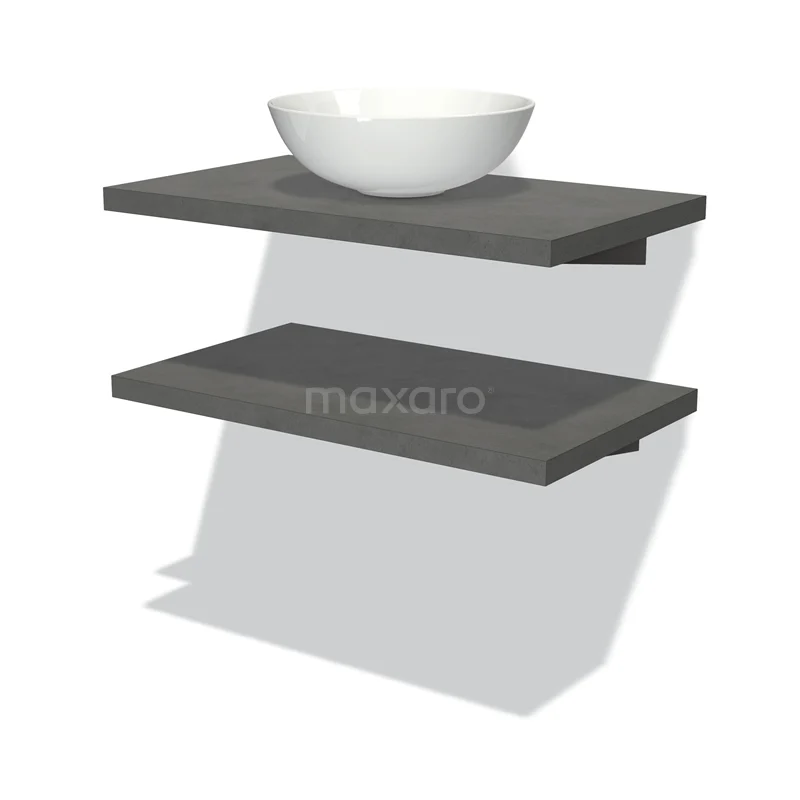 Modulo Plato Badmöbel mit Aufsatzwaschbecken | 80 cm Dunkelgrauer Beton front Dunkelgrauer Beton blatt 2 Waschtischplatten