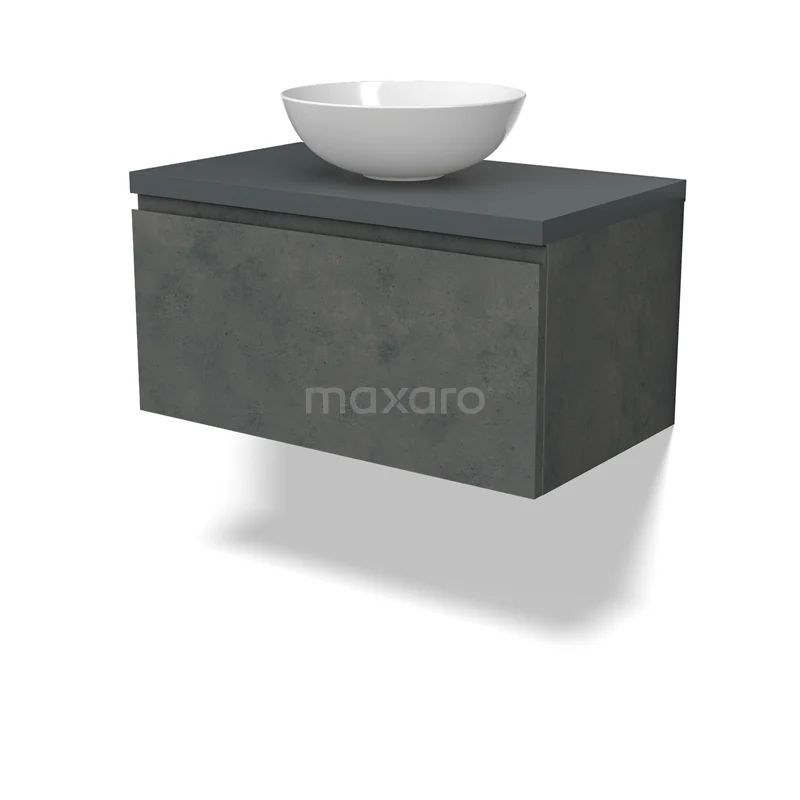 Modulo Plato Badmöbel mit Aufsatzwaschbecken | 80 cm Dunkelgrauer Beton Grifflos front Dunkelgrau blatt 1 Schublade