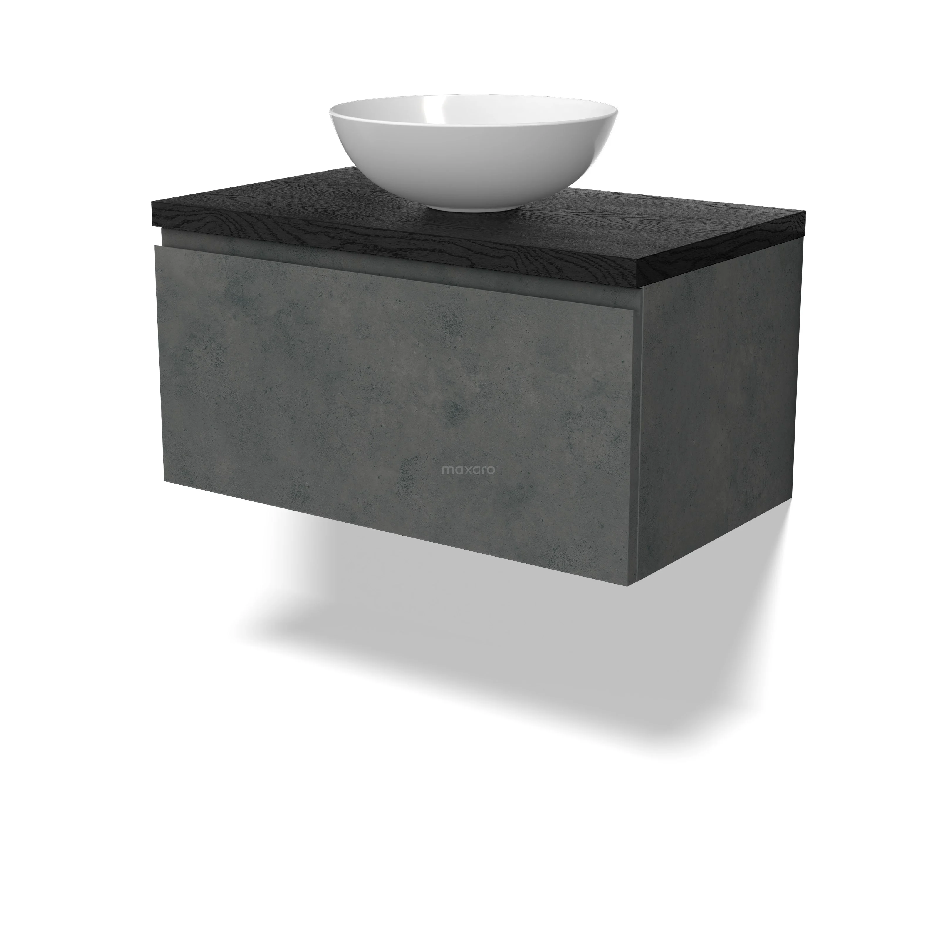 Modulo Plato Badmöbel mit Aufsatzwaschbecken | 80 cm Dunkelgrauer Beton Grifflos front Schwarze Eiche blatt 1 Schublade