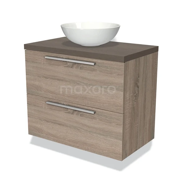 Modulo Plato Badmöbel mit Aufsatzwaschbecken | 80 cm Eiche Flach front Dunkelbraune Eiche blatt 2 übereinanderliegende Schubladen