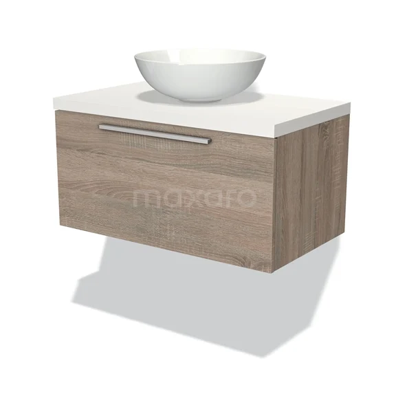 Modulo Plato Badmöbel mit Aufsatzwaschbecken | 80 cm Eiche Flach front Matt Weiß blatt 1 Schublade