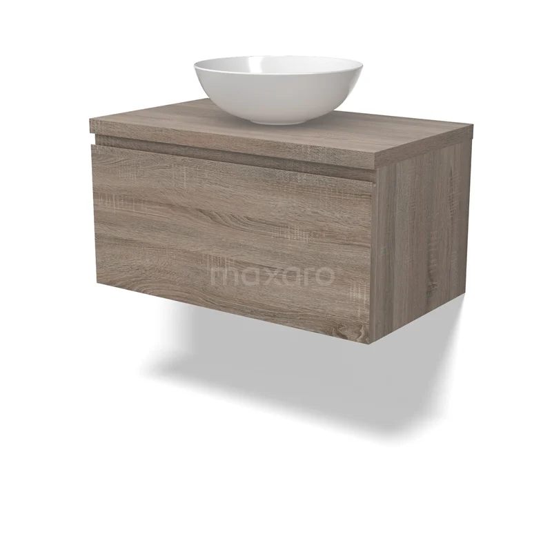 Modulo Plato Badmöbel mit Aufsatzwaschbecken | 80 cm Eiche Grifflos front Eiche blatt 1 Schublade