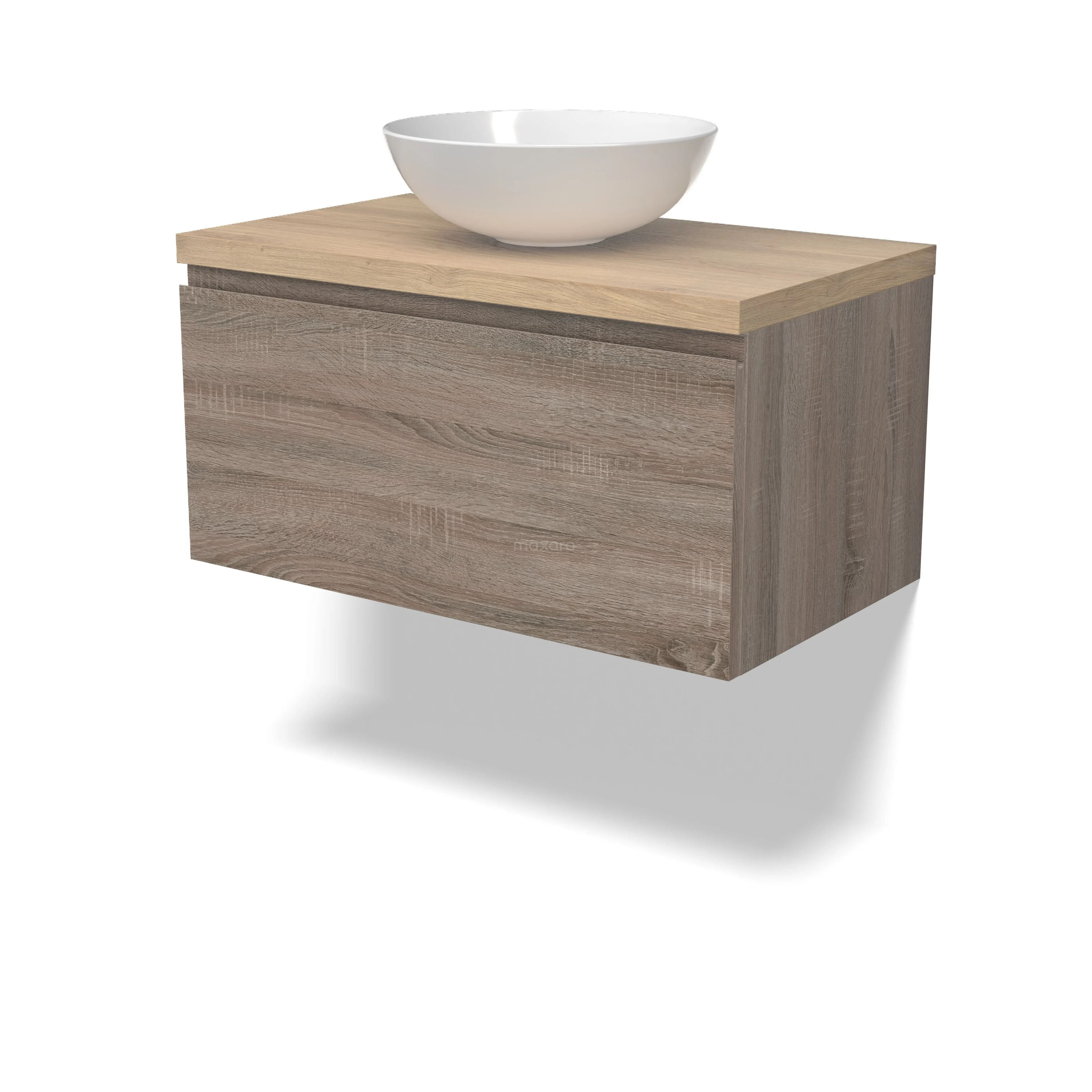 Modulo Plato Badmöbel mit Aufsatzwaschbecken | 80 cm Eiche Grifflos front Hellbraune Eiche blatt 1 Schublade