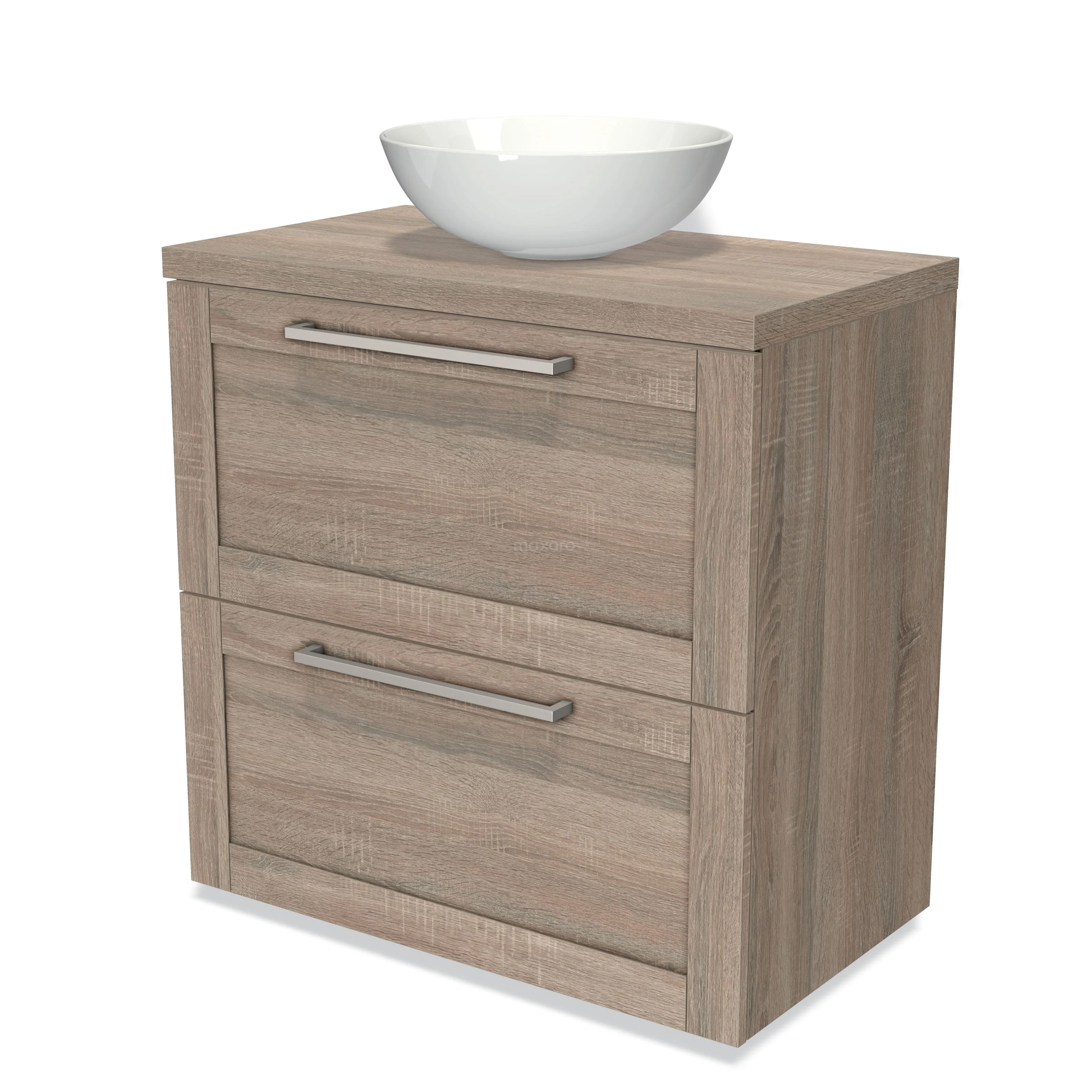 Modulo Plato Badmöbel mit Aufsatzwaschbecken | 80 cm Eiche Rahmen front Eiche blatt 2 hohe Schubladen übereinanderliegend