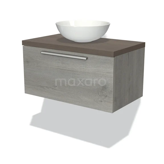 Modulo Plato Badmöbel mit Aufsatzwaschbecken | 80 cm Graue Eiche Flach front Dunkelbraune Eiche blatt 1 Schublade