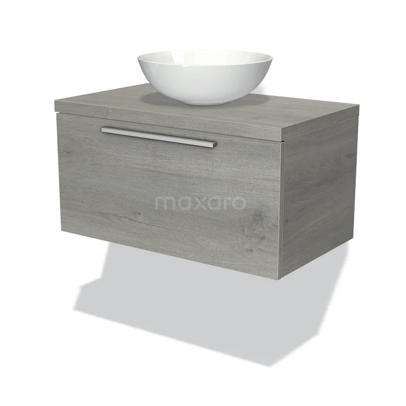 Modulo Plato Badmöbel mit Aufsatzwaschbecken | 80 cm Graue Eiche Flach front Graue Eiche blatt 1 Schublade