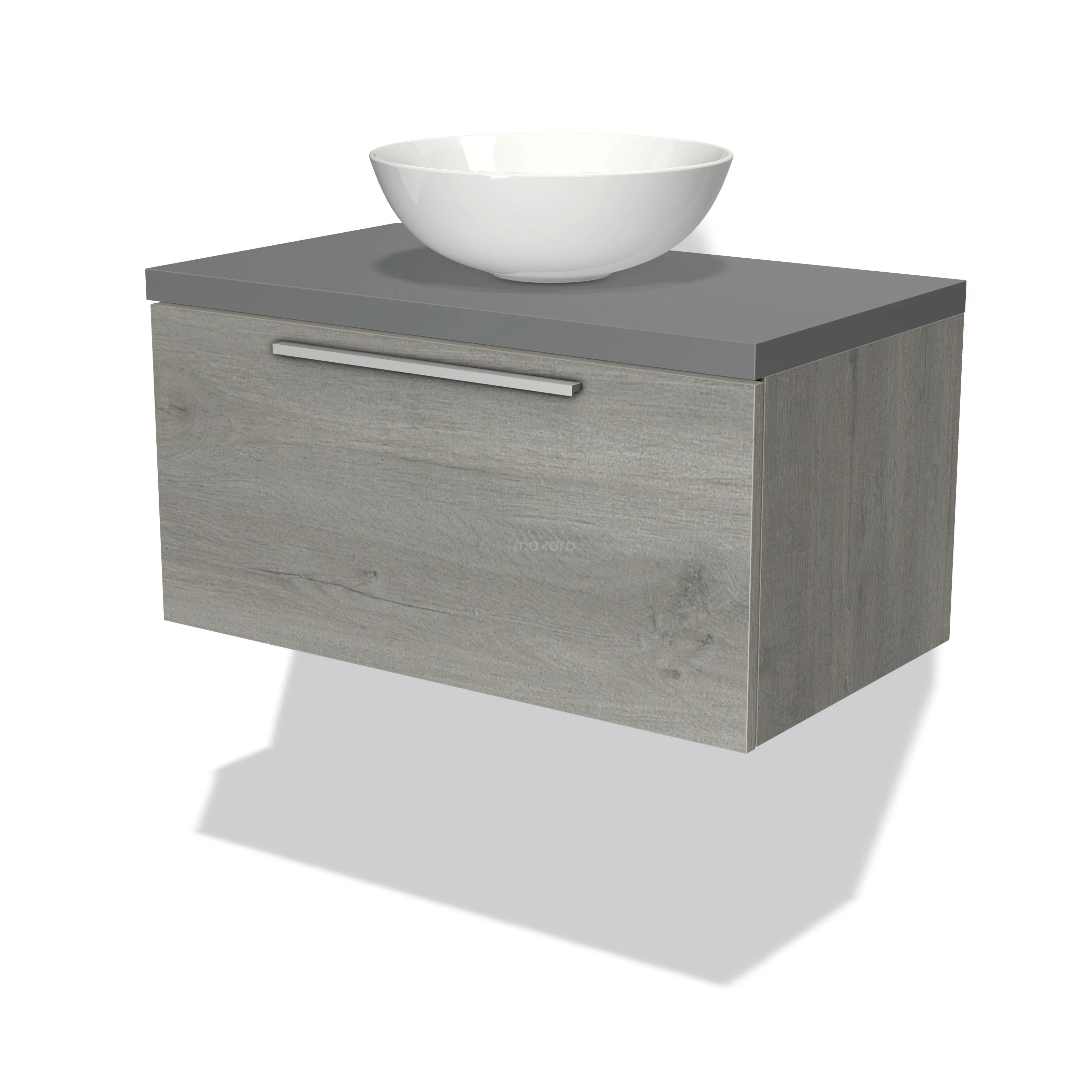 Modulo Plato Badmöbel mit Aufsatzwaschbecken | 80 cm Graue Eiche Flach front Mittelgrau blatt 1 Schublade