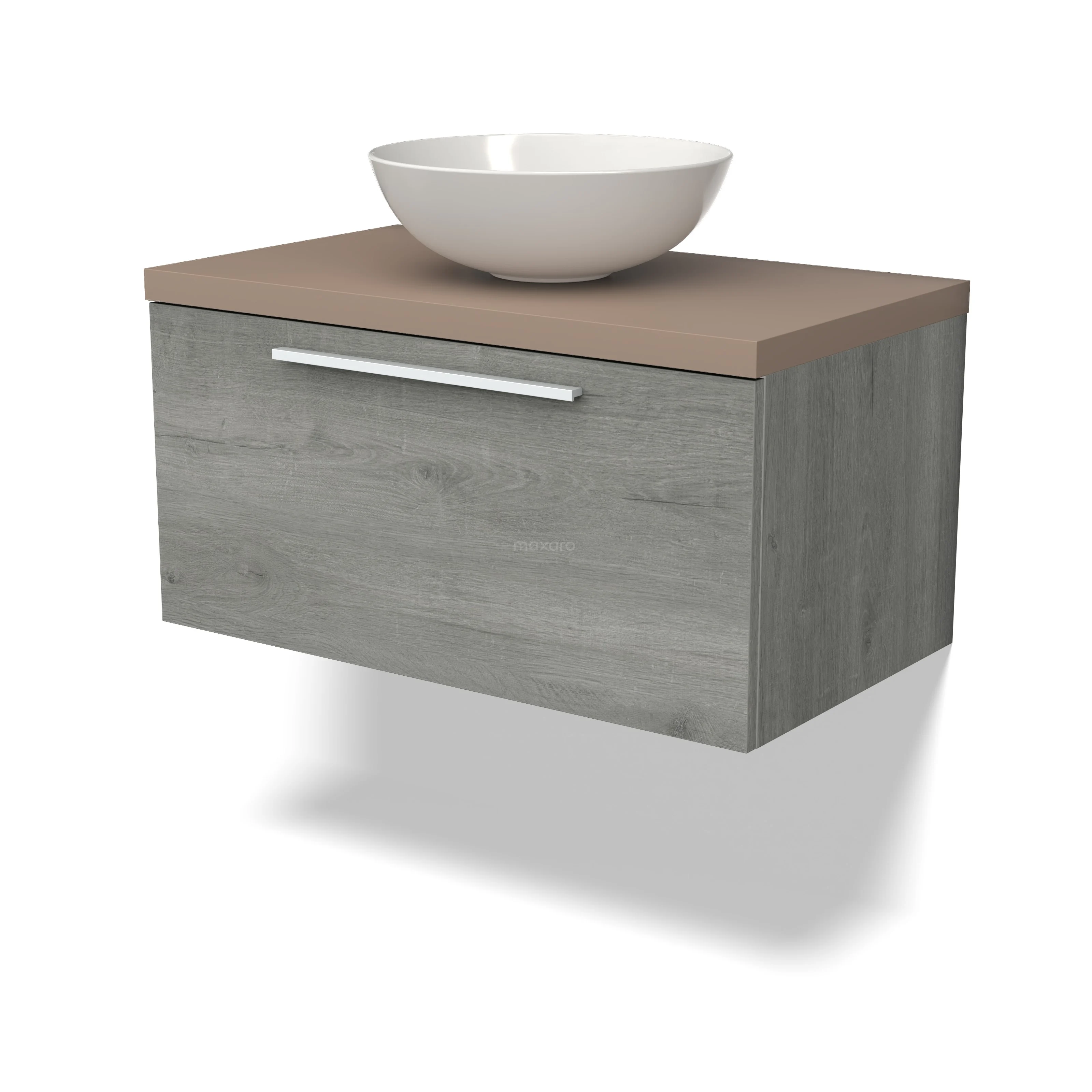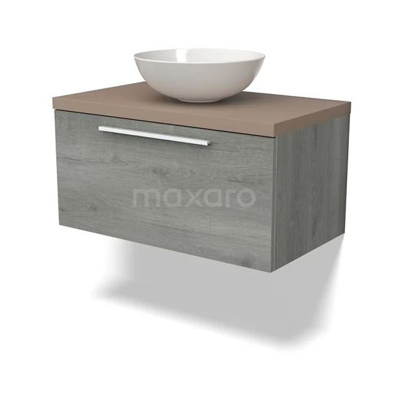 Modulo Plato Badmöbel mit Aufsatzwaschbecken | 80 cm Graue Eiche Flach front Taupe blatt 1 Schublade