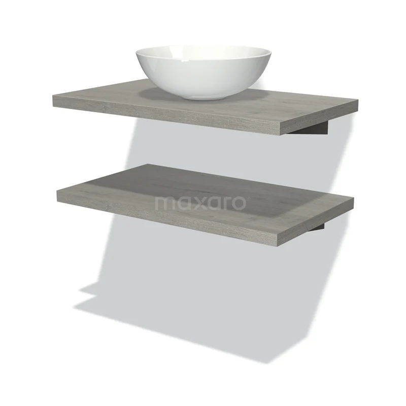 Modulo Plato Badmöbel mit Aufsatzwaschbecken | 80 cm Graue Eiche front Graue Eiche blatt 2 Waschtischplatten