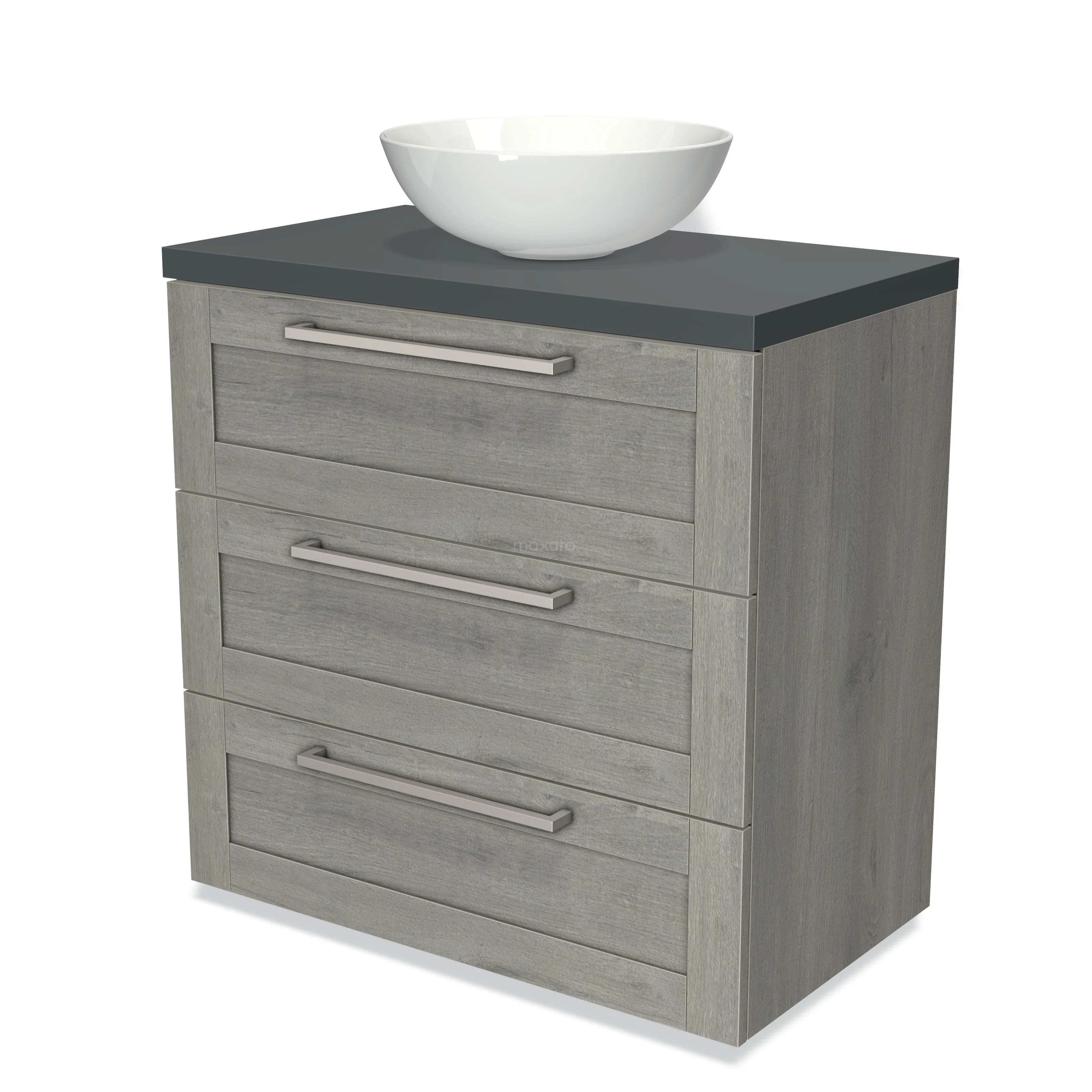 Modulo Plato Badmöbel mit Aufsatzwaschbecken | 80 cm Graue Eiche Rahmen front Dunkelgrau blatt 3 Schubladen
