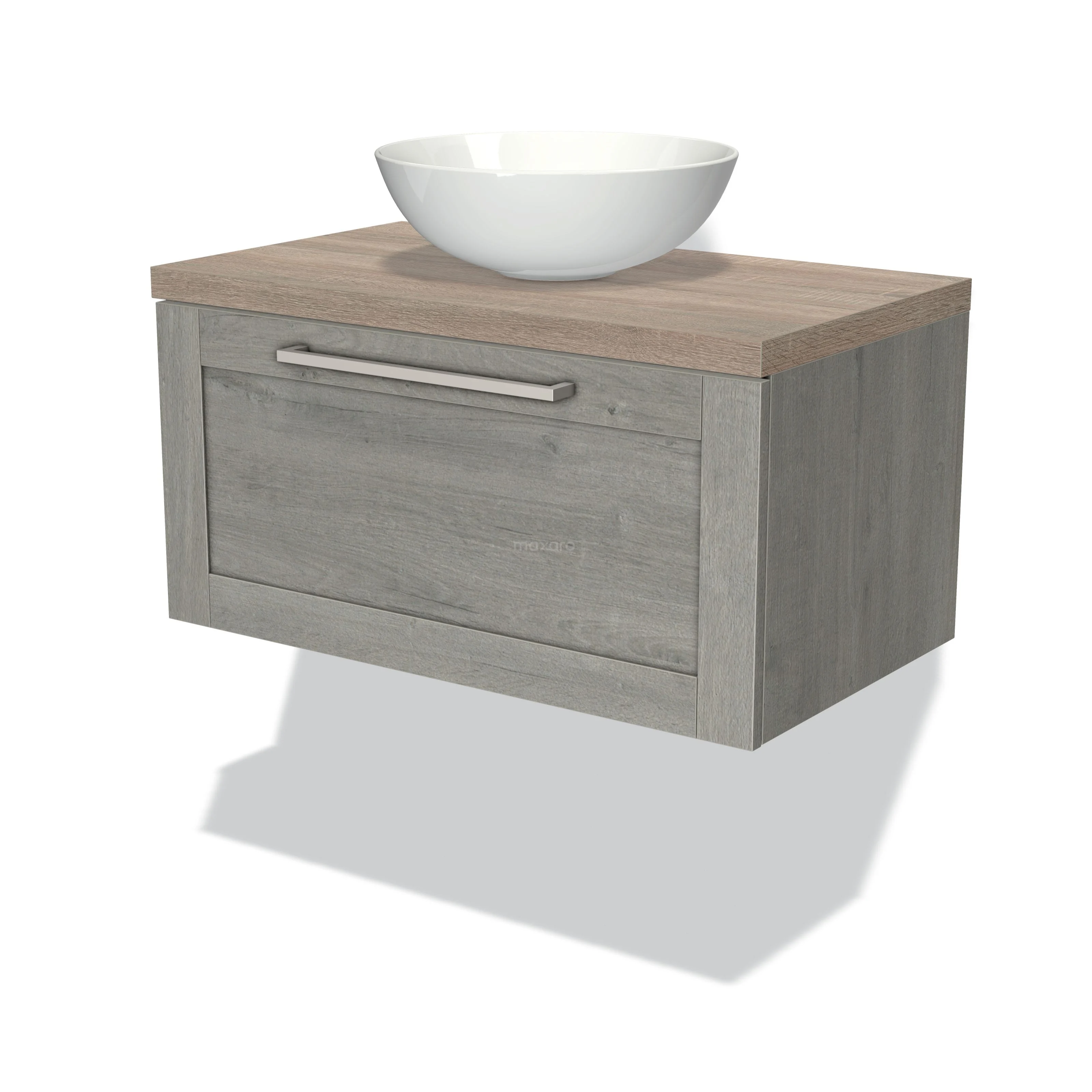 Modulo Plato Badmöbel mit Aufsatzwaschbecken | 80 cm Graue Eiche Rahmen front Eiche blatt 1 Schublade