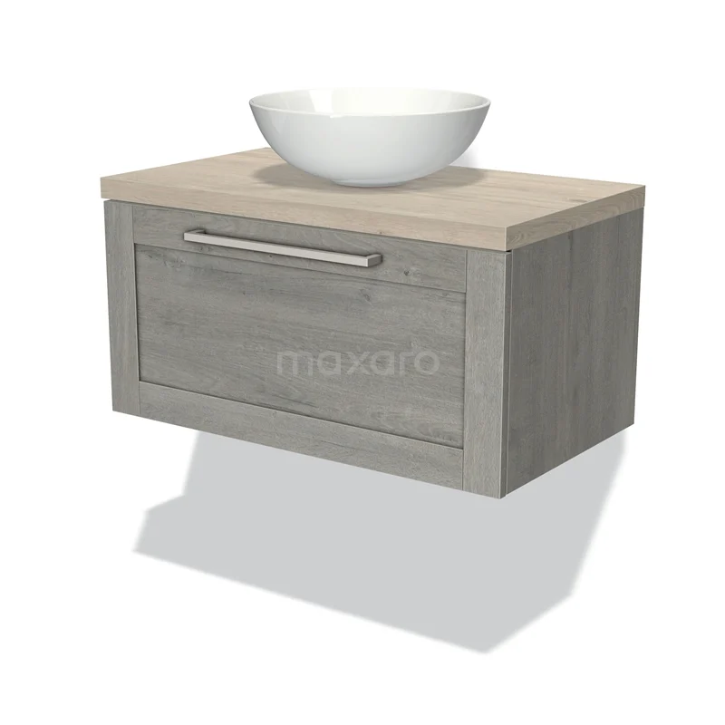 Modulo Plato Badmöbel mit Aufsatzwaschbecken | 80 cm Graue Eiche Rahmen front Hellgraue Eiche blatt 1 Schublade