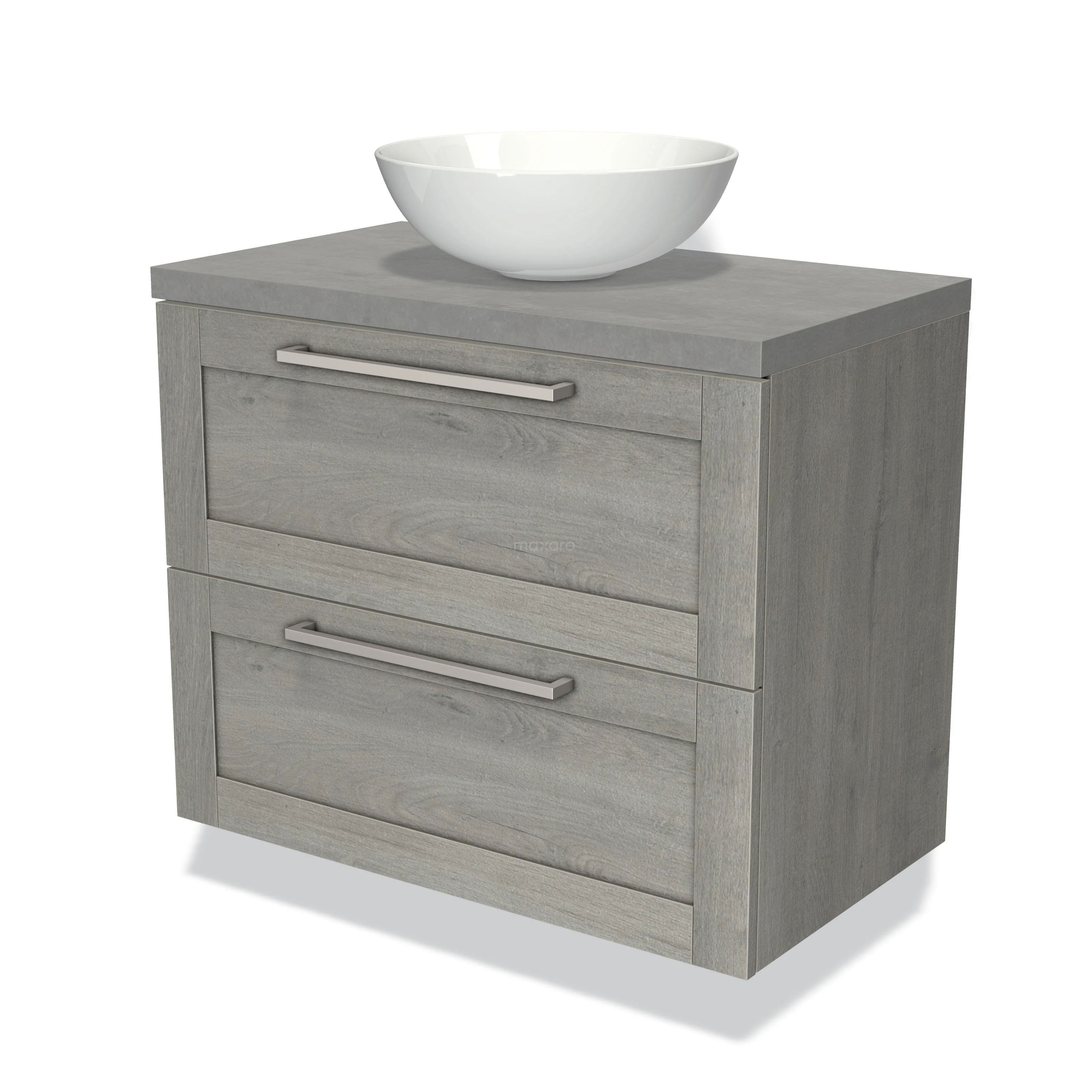 Modulo Plato Badmöbel mit Aufsatzwaschbecken | 80 cm Graue Eiche Rahmen front Hellgrauer Beton blatt 2 übereinanderliegende Schubladen