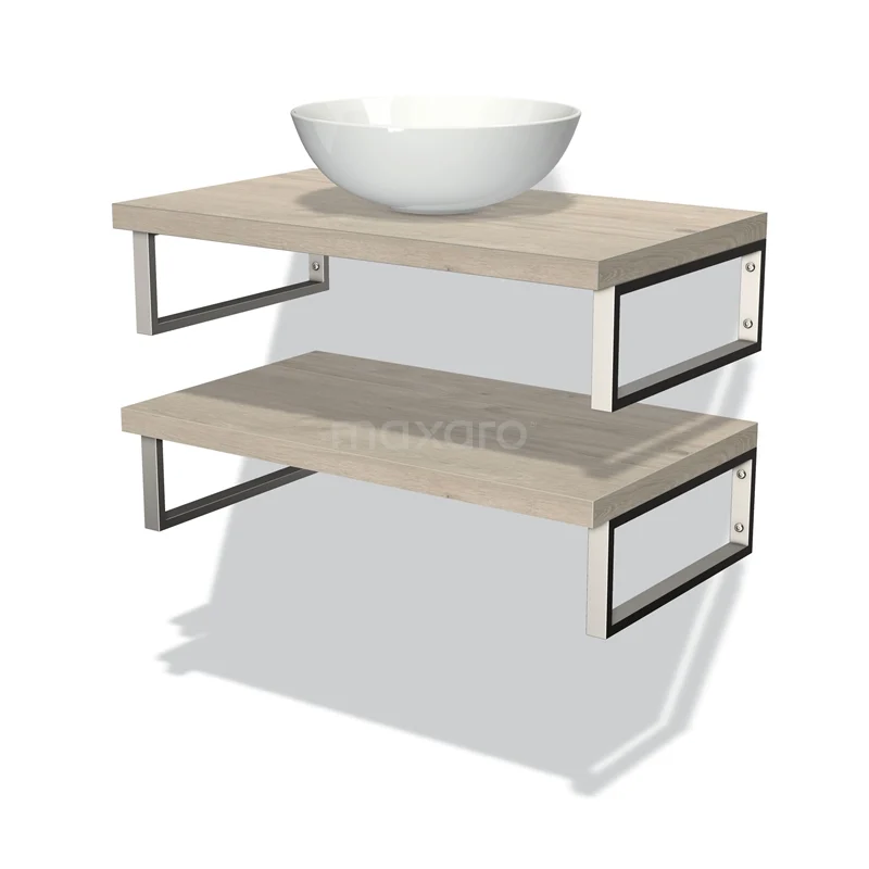Modulo Plato Badmöbel mit Aufsatzwaschbecken | 80 cm Hellgraue Eiche front Hellgraue Eiche blatt 2 Waschtischplatten
