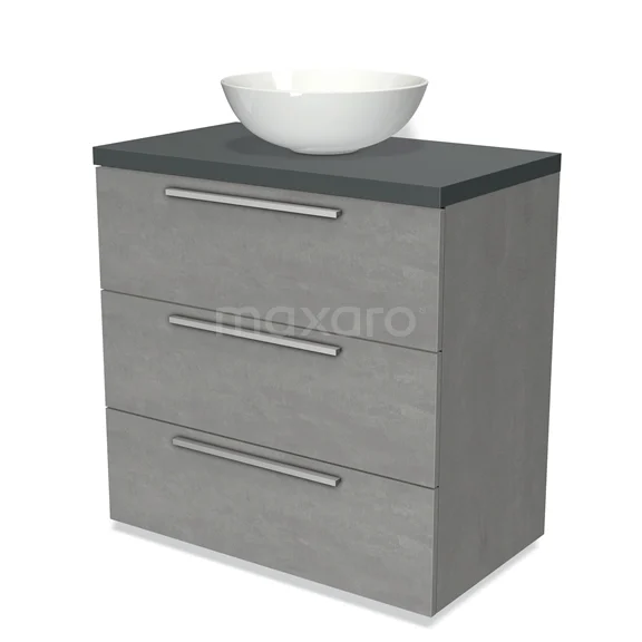 Modulo Plato Badmöbel mit Aufsatzwaschbecken | 80 cm Hellgrauer Beton Flach front Dunkelgrau blatt 3 Schubladen