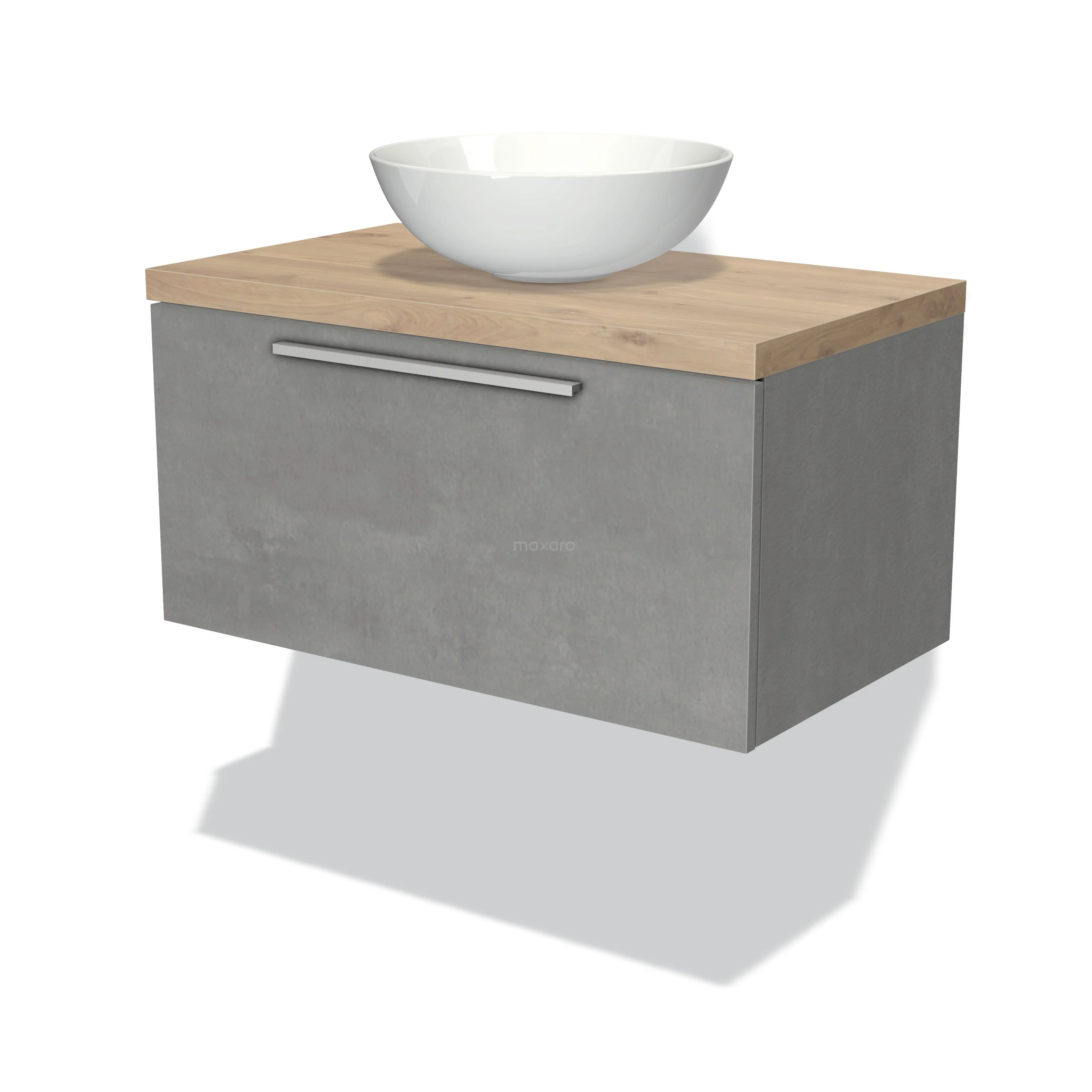 Modulo Plato Badmöbel mit Aufsatzwaschbecken | 80 cm Hellgrauer Beton Flach front Hellbraune Eiche blatt 1 Schublade