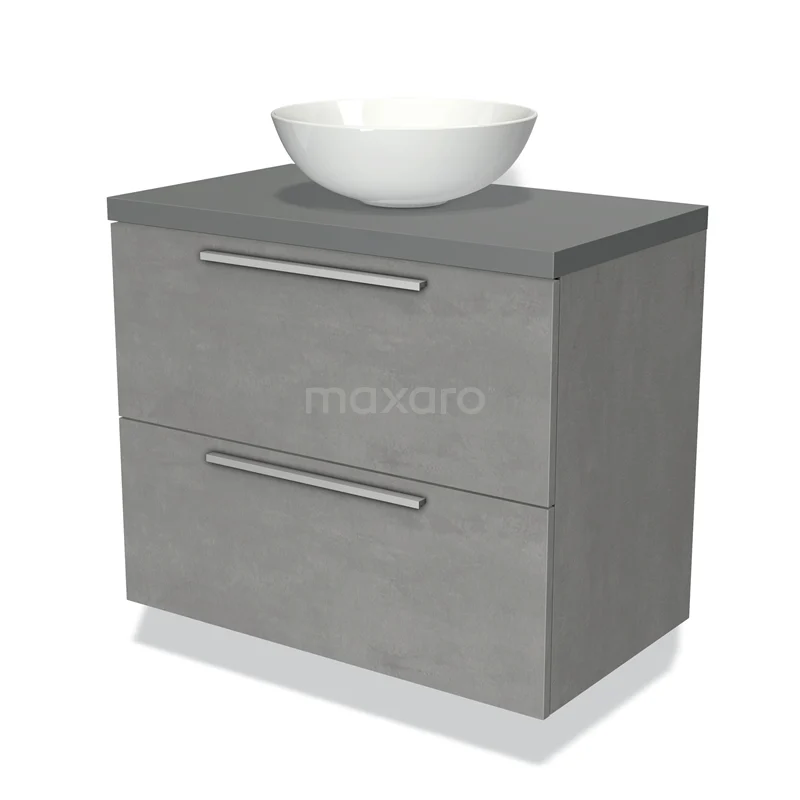 Modulo Plato Badmöbel mit Aufsatzwaschbecken | 80 cm Hellgrauer Beton Flach front Mittelgrau blatt 2 übereinanderliegende Schubladen