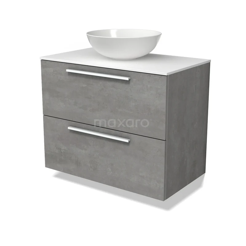 Modulo Plato Badmöbel mit Aufsatzwaschbecken | 80 cm Hellgrauer Beton Flach front Solid Surface blatt 2 übereinanderliegende Schubladen