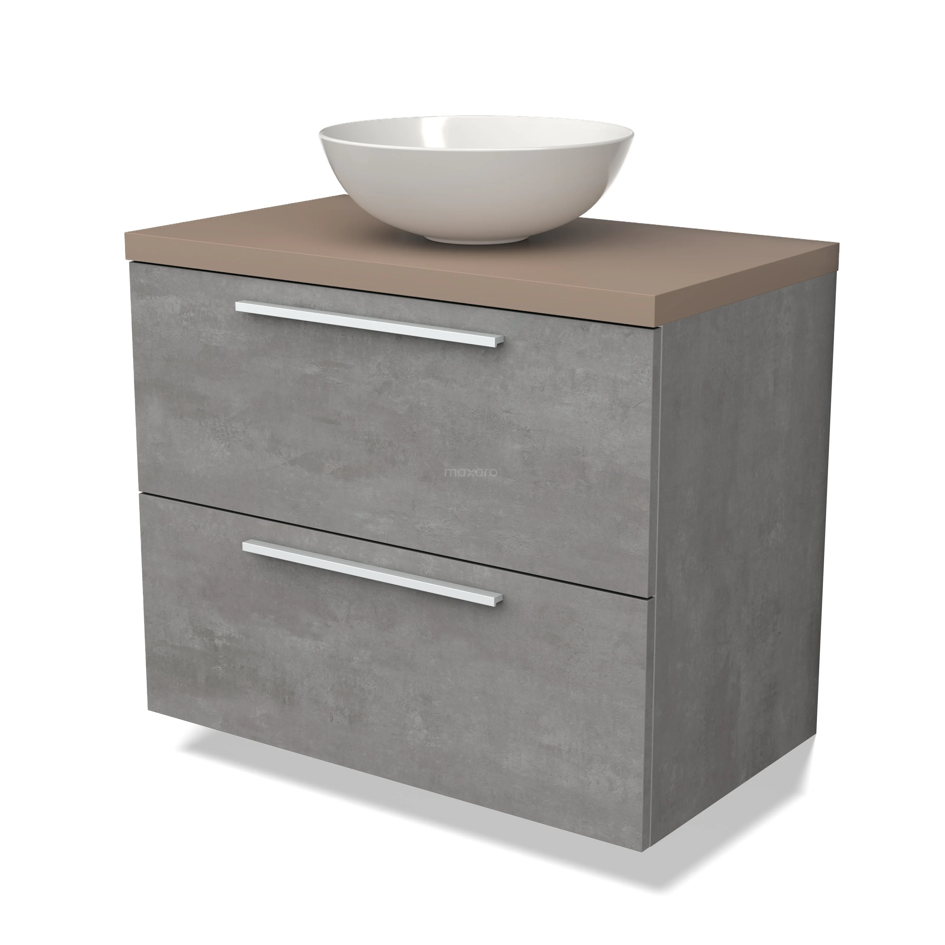Modulo Plato Badmöbel mit Aufsatzwaschbecken | 80 cm Hellgrauer Beton Flach front Taupe blatt 2 übereinanderliegende Schubladen