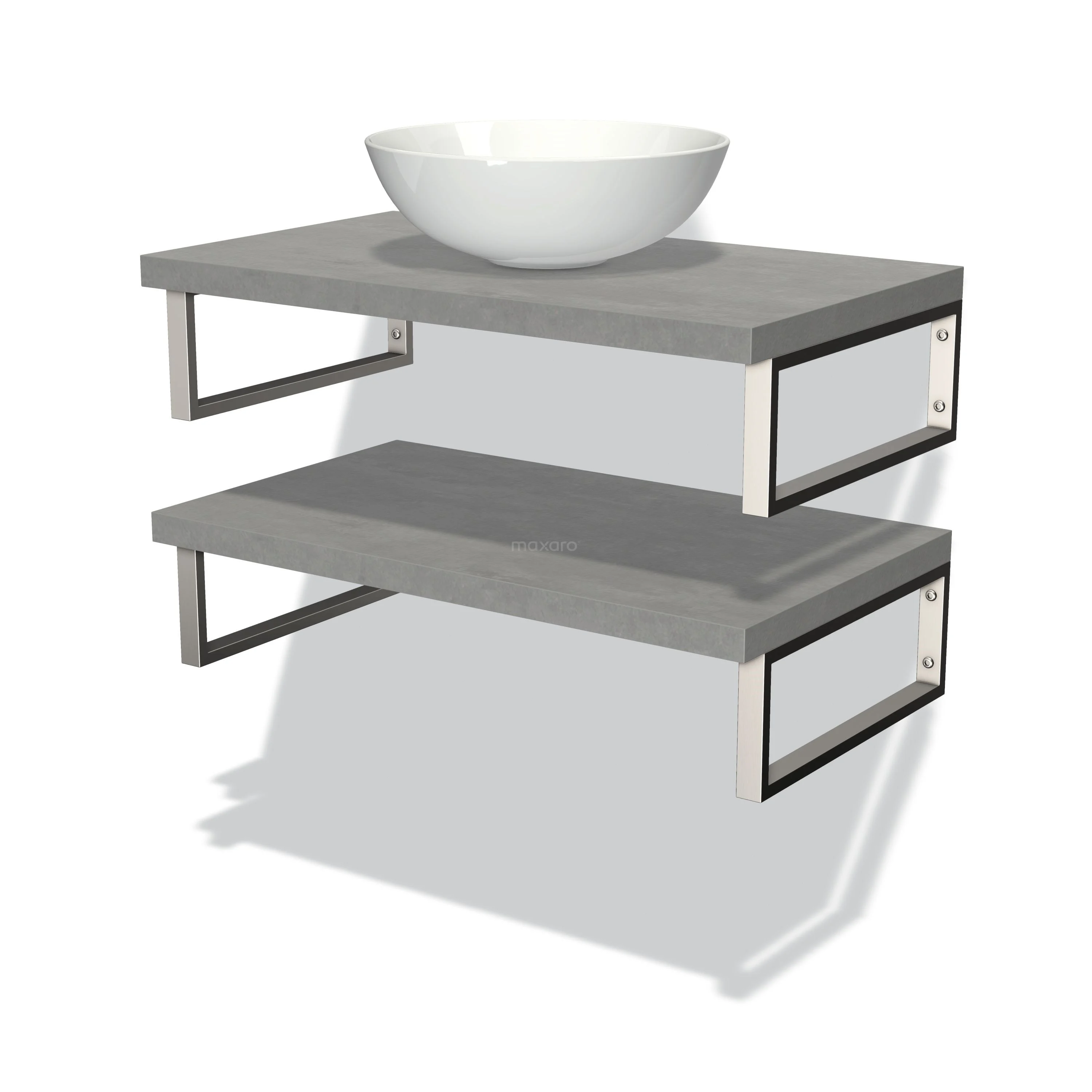 Modulo Plato Badmöbel mit Aufsatzwaschbecken | 80 cm Hellgrauer Beton front Hellgrauer Beton blatt 2 Waschtischplatten
