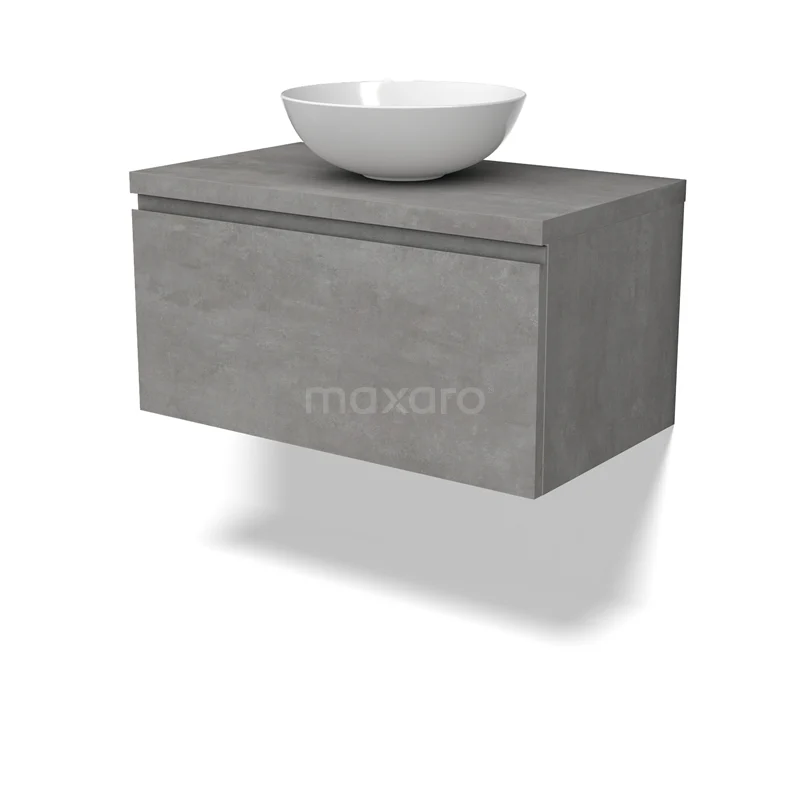 Modulo Plato Badmöbel mit Aufsatzwaschbecken | 80 cm Hellgrauer Beton Grifflos front Hellgrauer Beton blatt 1 Schublade