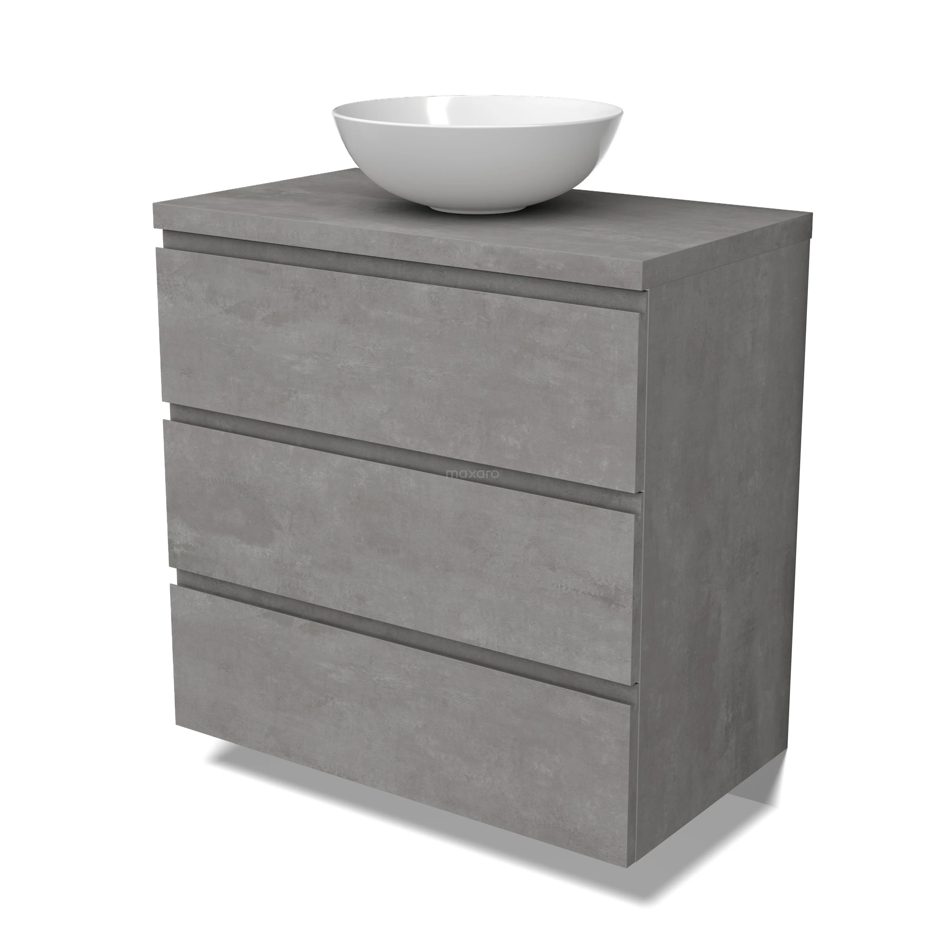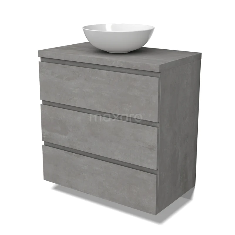 Modulo Plato Badmöbel mit Aufsatzwaschbecken | 80 cm Hellgrauer Beton Grifflos front Hellgrauer Beton blatt 3 Schubladen
