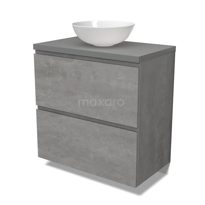 Modulo Plato Badmöbel mit Aufsatzwaschbecken | 80 cm Hellgrauer Beton Grifflos front Mittelgrau blatt 2 hohe Schubladen übereinanderliegend