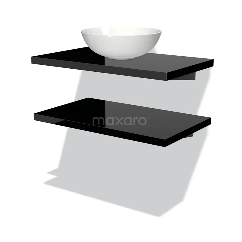 Modulo Plato Badmöbel mit Aufsatzwaschbecken | 80 cm Hochglanz Schwarz front Hochglanz Schwarz blatt 2 Waschtischplatten