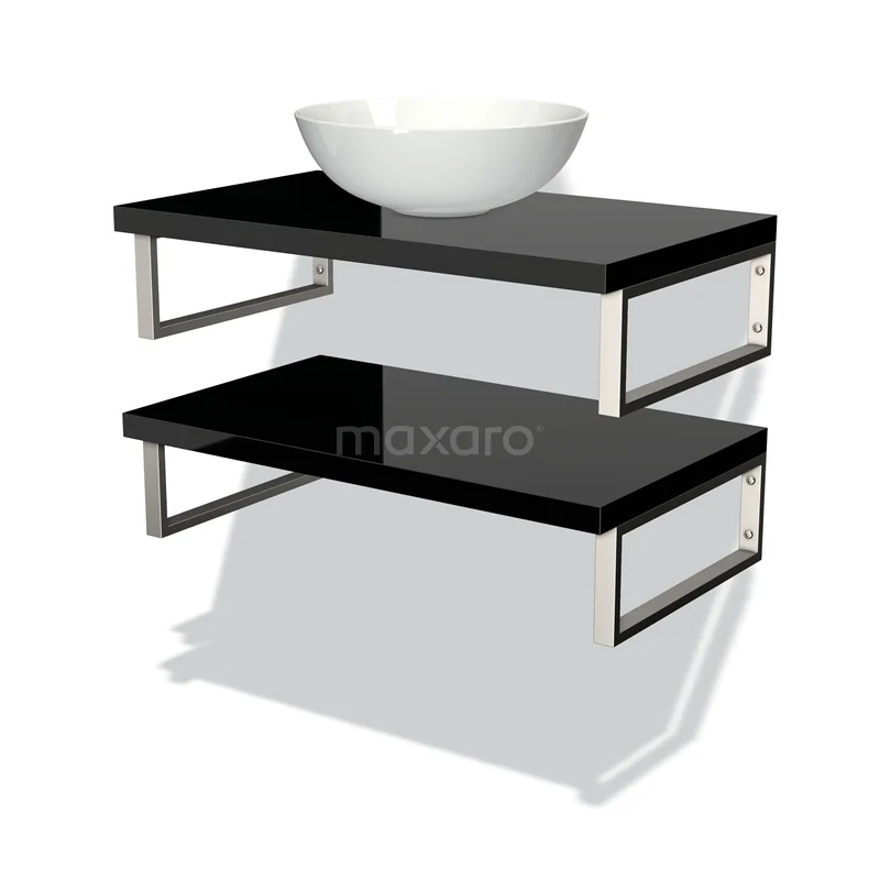 Modulo Plato Badmöbel mit Aufsatzwaschbecken | 80 cm Hochglanz Schwarz front Hochglanz Schwarz blatt 2 Waschtischplatten