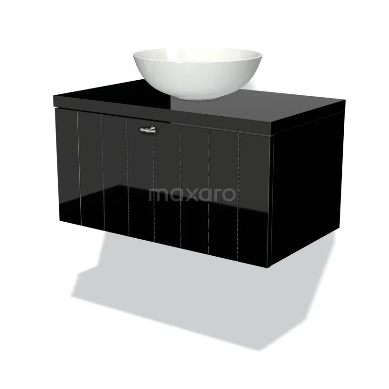 Modulo Plato Badmöbel mit Aufsatzwaschbecken | 80 cm Hochglanz Schwarz Lamelle front Hochglanz Schwarz blatt 1 Schublade