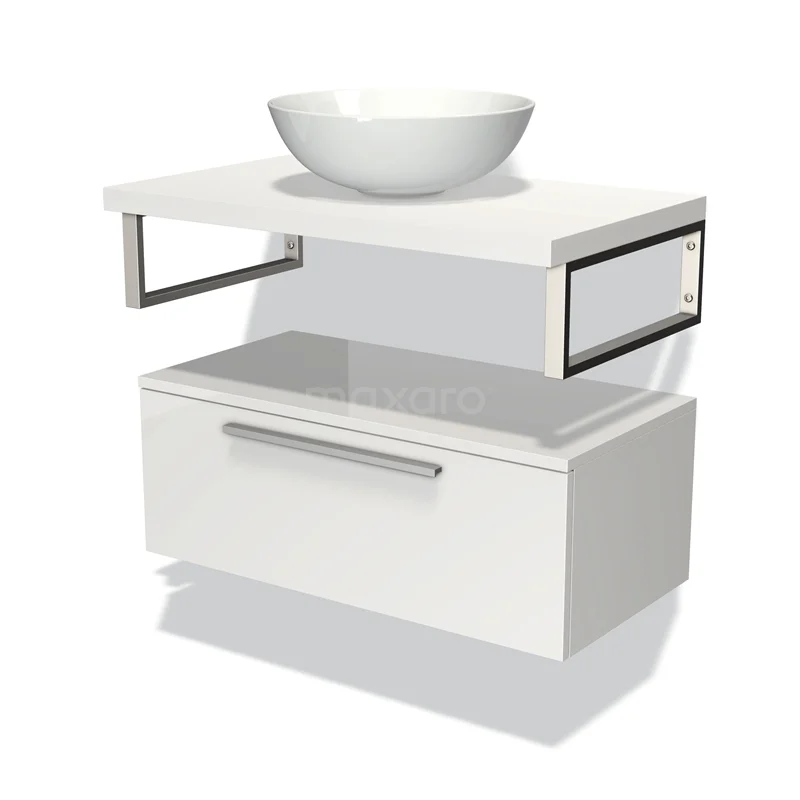 Modulo Plato Badmöbel mit Aufsatzwaschbecken | 80 cm Hochglanz Weiß Flach front Matt Weiß blatt Tief hängend