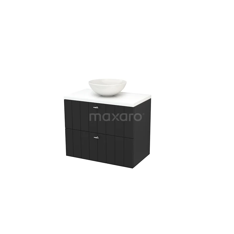 Modulo+ Plato Badmöbel mit Aufsatzwaschbecken | 80 cm Hochglanz Weiß Lamelle front Hochglanz Weiß blatt 2 übereinanderliegende Schubladen