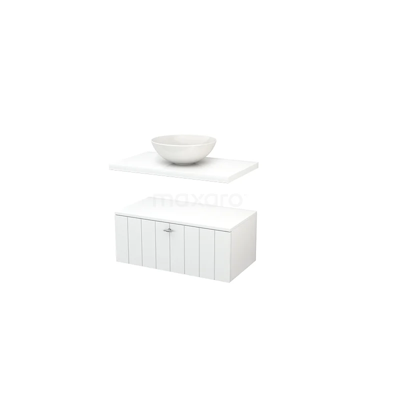 Modulo+ Plato Badmöbel mit Aufsatzwaschbecken | 80 cm Hochglanz Weiß Lamelle front Hochglanz Weiß blatt Tief hängend