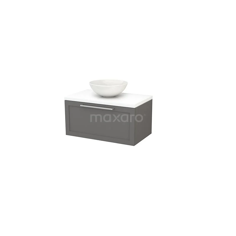 Modulo+ Plato Badmöbel mit Aufsatzwaschbecken | 80 cm Hochglanz Weiß Rahmen front Hochglanz Weiß blatt 1 Schublade
