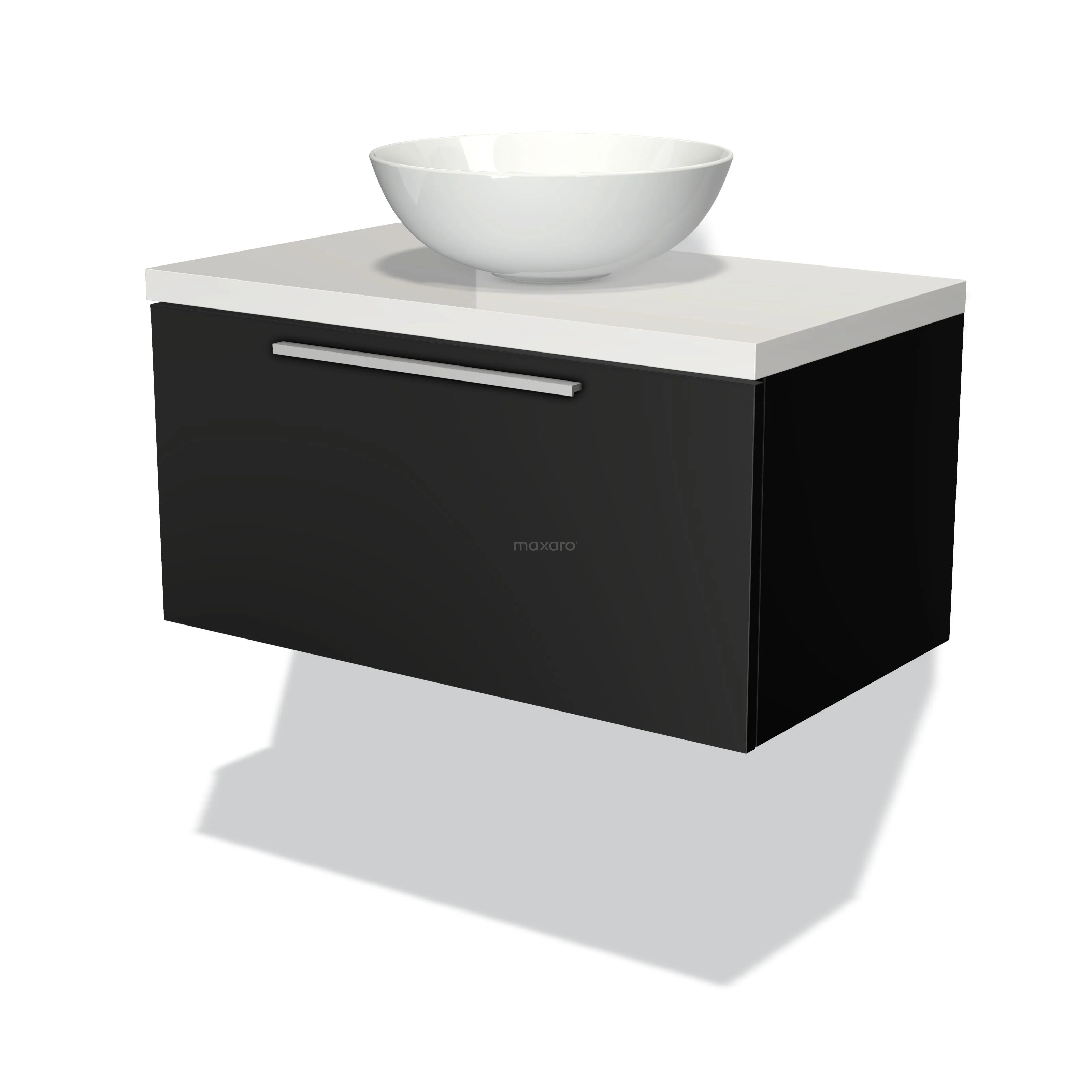 Modulo Plato Badmöbel mit Aufsatzwaschbecken | 80 cm Matt Schwarz Flach front Hochglanz Weiß blatt 1 Schublade