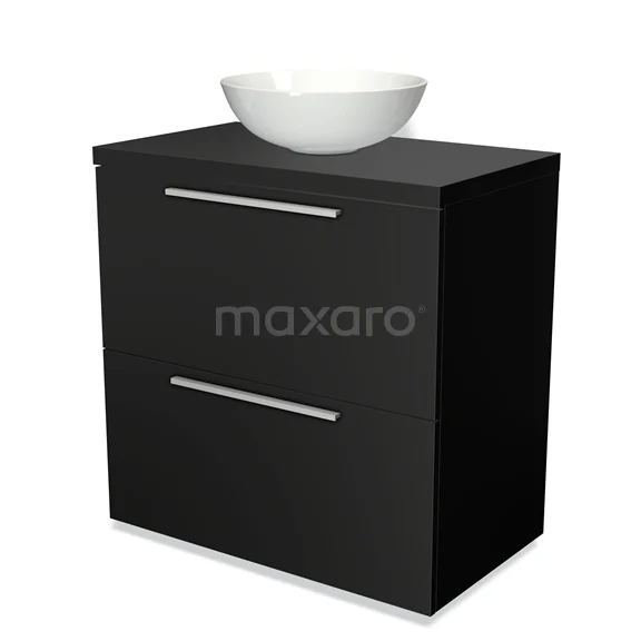 Modulo Plato Badmöbel mit Aufsatzwaschbecken | 80 cm Matt Schwarz Flach front Matt Schwarz blatt 2 hohe Schubladen übereinanderliegend