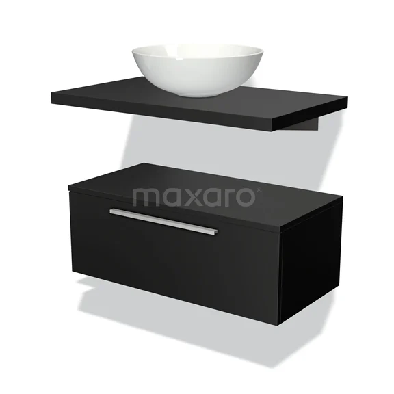 Modulo Plato Badmöbel mit Aufsatzwaschbecken | 80 cm Matt Schwarz Flach front Matt Schwarz blatt Tief hängend